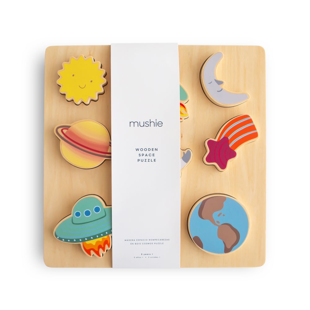 Space Puzzle: Explore the universe with the Space Wooden Puzzle. Seven space-themed pieces with smooth edges engage tiny hands, improving fine motor skills and coordination. Sparks curiosity and learning in a fun way