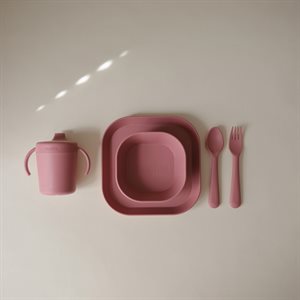 Combine the plate with Mushie’s other dinnerware products in matching colors to create a perfect dinnerware set.