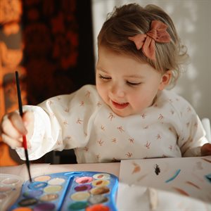 Keep kids clean during mealtimes, art projects, and other messy moments with the Mushie Long Sleeve Bib.