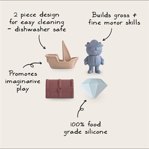 Make a splash at bathtime with the Mushie Pirate Mold Free Bath Play Set, featuring a charming pirate bear along with a treasure chest, ship, and jewel.