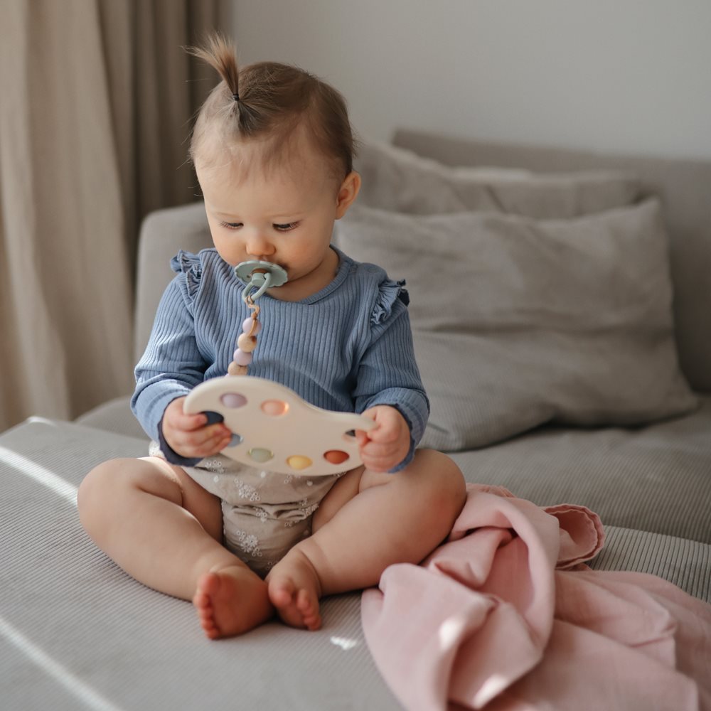 Encourage sensory play with the Mushie Palette Press Toy. Inspired by an artist’s paint palette, this playful design captures your child’s attention while supporting early development.