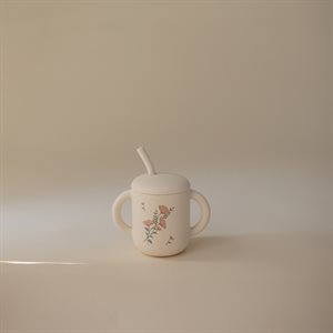 1 x Silicone Training Cup + Straw - Pink Flowers